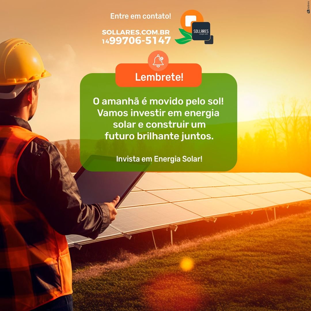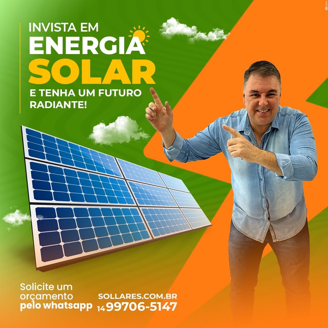 Sollares Energia Solar – Ourinhos | Fornecedor de Equipamentos e Soluções de Energia Solar Fotovoltaica Mais de 20 anos em tecnologia. Desde 2014 somos referência em energia solar, com mais de 7 000 clientes gerando sua própria energia em Ourinhos e região. ✅ Venda e instalação de painéis solares residenciais e comerciais ✅ Engenharia certificada pelo CREA – projetos homologados ✅ Manutenção e limpeza especializada de sistemas fotovoltaicos ✅ Financiamento e assessoria completa – frete e homologação grátis Economize até 95 % na conta de luz e contribua para um futuro sustentável. Pensou em energia solar? Conte com a Sollares Energia Solar – Ourinhos. 📞 (14) 99706‑5147 |